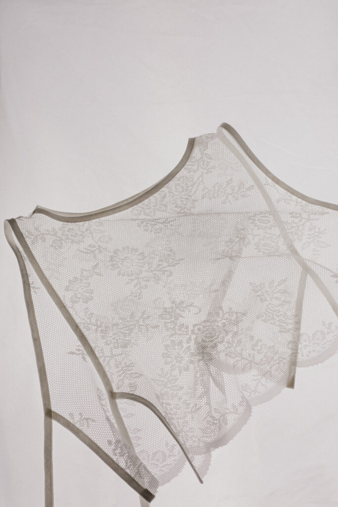 Chaque expérimentation produit une identité visuelle unique, construisant une série riche mais cohérente, où la dentelle raconte sa propre histoire avant même d’être portée.
